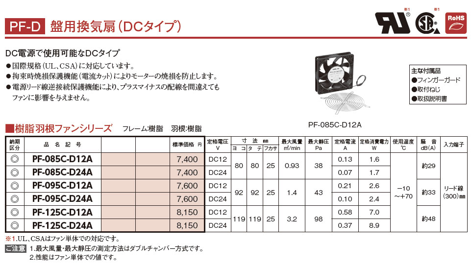 PF-125C-D12A PF-D 盤用換気扇(DCタイプ)