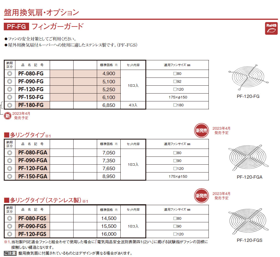 PF-120-FG 盤用換気扇・オプション フィンガーガード