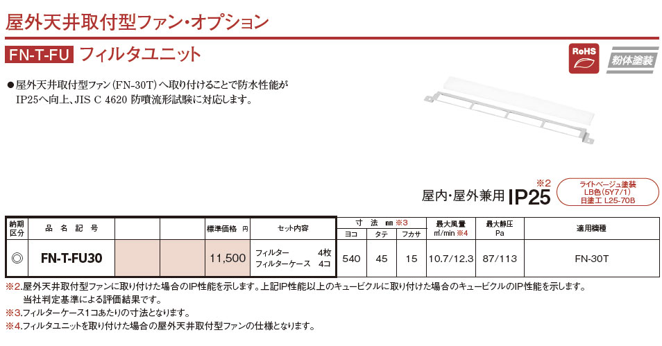 FN-T-FU30 屋外天井取付型ファン・オプション フィルタユニット