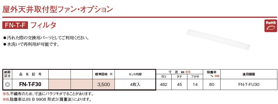 FN-T-F30 屋外天井取付型ファン・オプション フィルタ