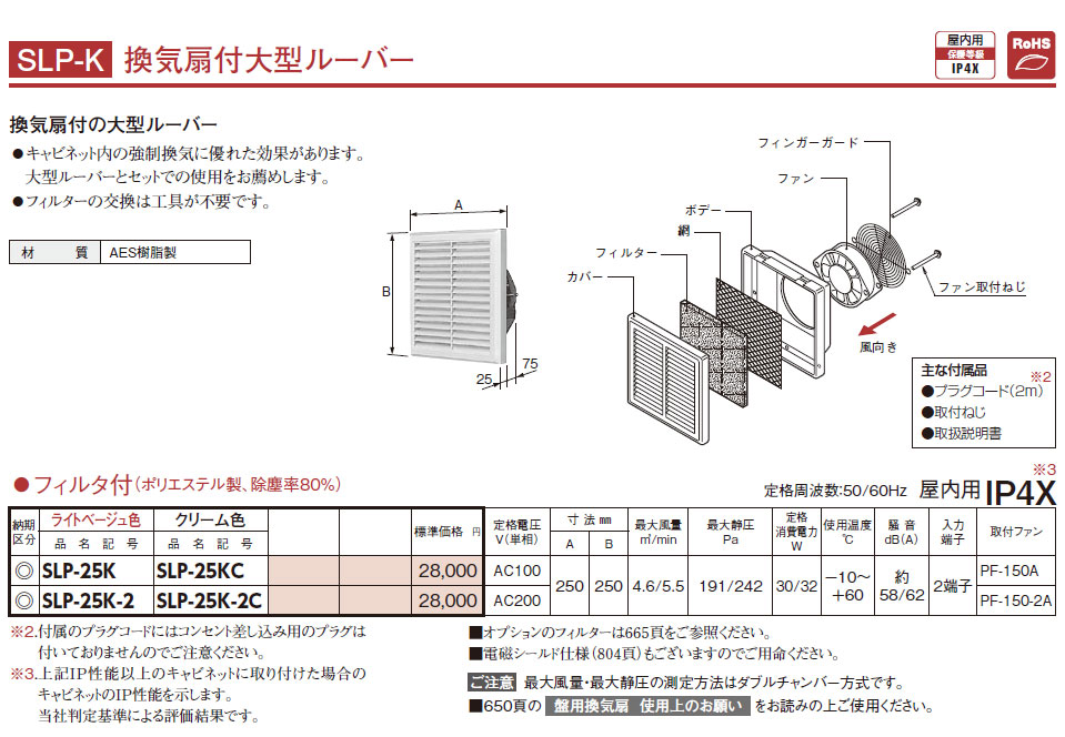 SLP-25K-2 SLP-K 換気扇付大型ルーバー