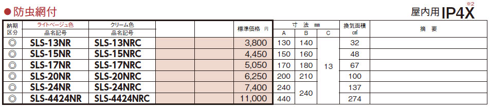 SLS-20NR SLS-NR ステンレス製ルーバー 防虫網付