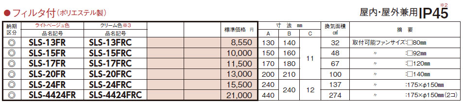 SLS-15FR SLS-FR ステンレス製ルーバー フィルタ付