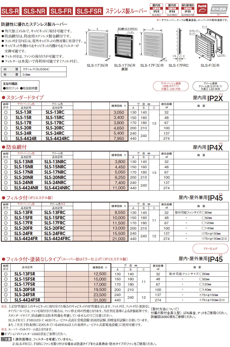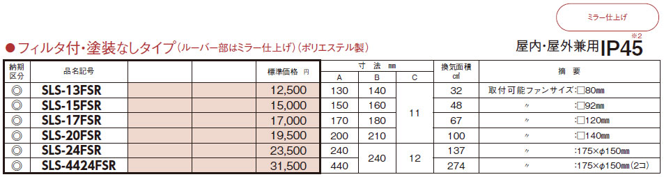 SLS-4424FSR SLS-FSR ステンレス製ルーバー フィルタ付 塗装なしタイプ