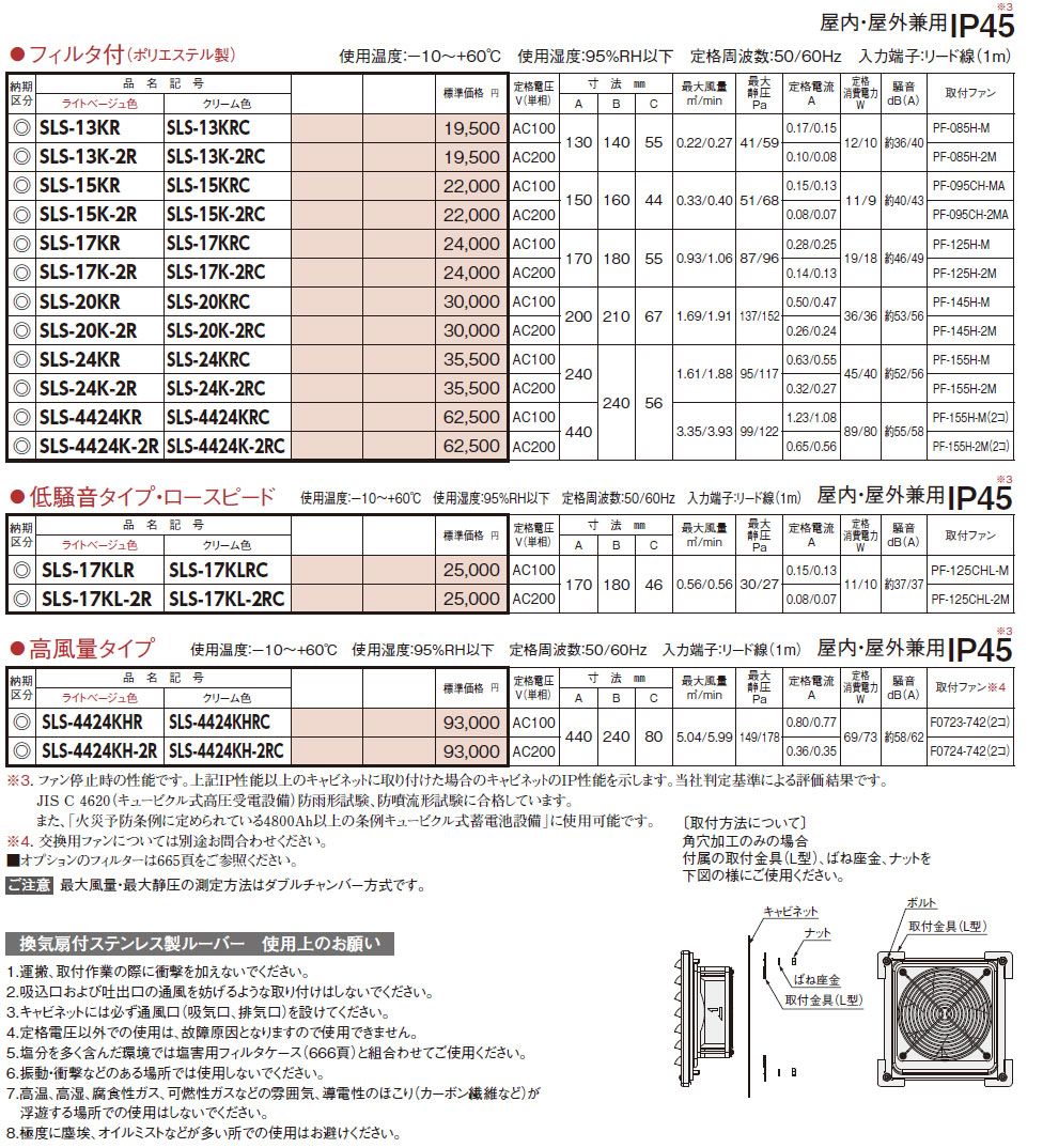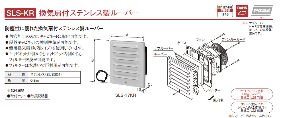 SLS-4424K-2R SLS-KR 換気扇付ステンレス製ルーバー フィルタ付