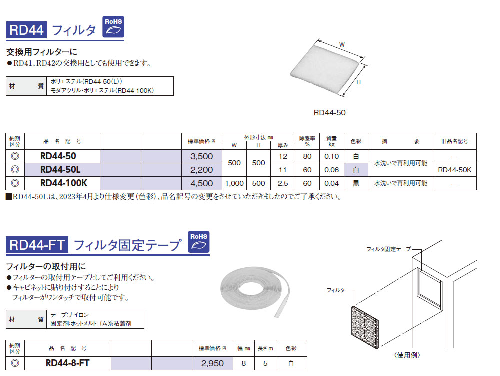 RD44-50L フィルターカセット・オプション フィルタ