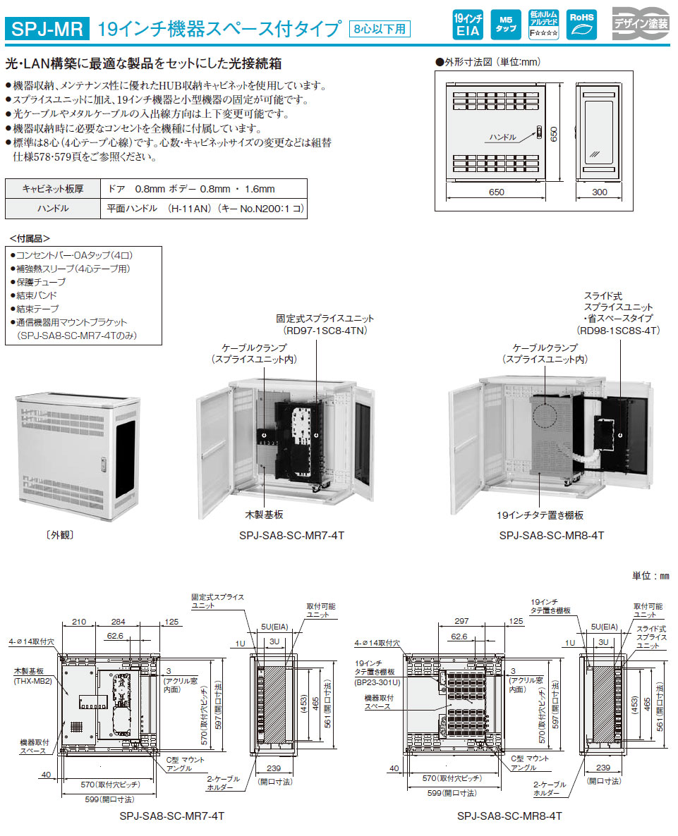 SPJ-SAS8-SC-MR8-4T 光接続箱 SPJ-MR 19インチ機器スペース付タイプ