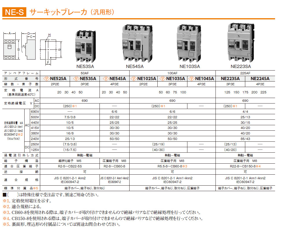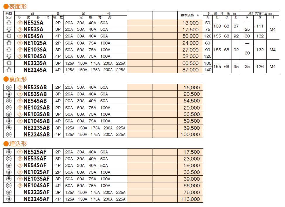 NE224SAF 4P 125A サーキットブレーカー(汎用形) 埋込形