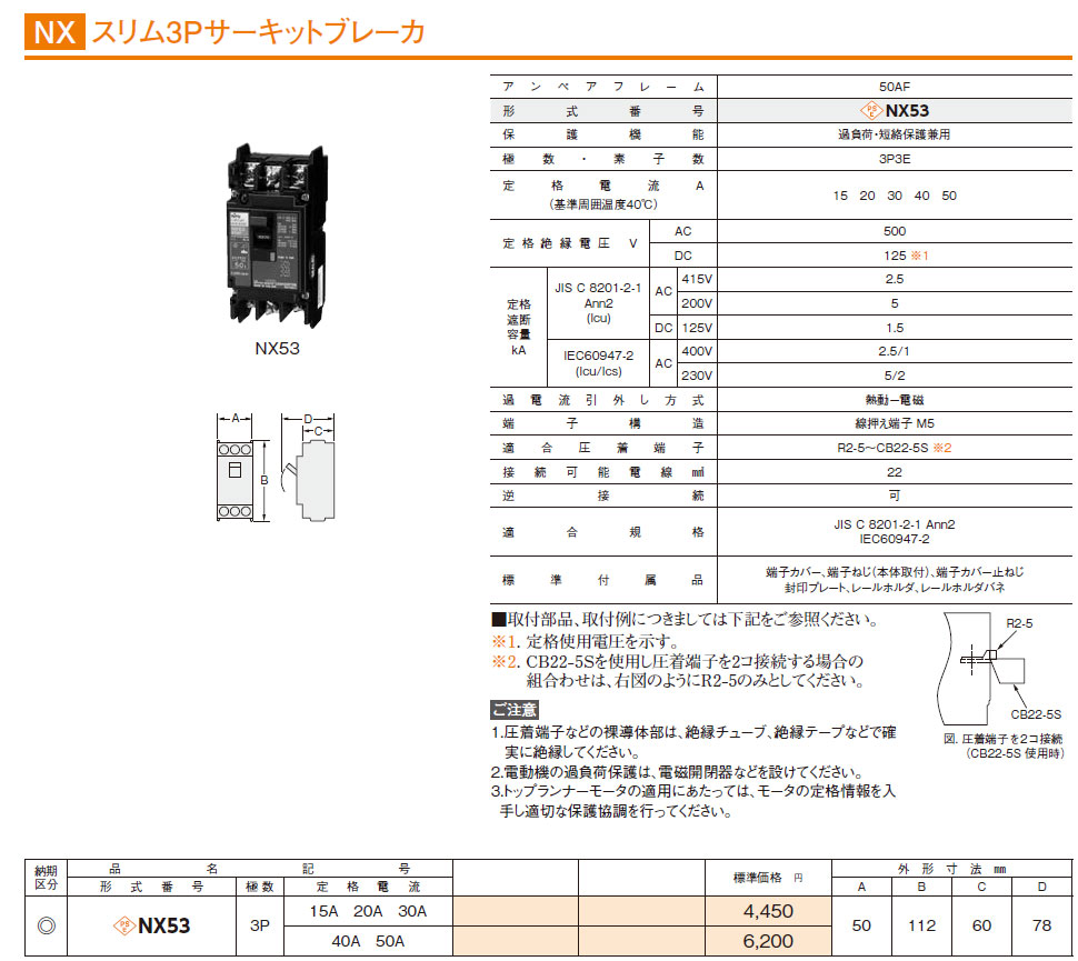 NX53 3P 15A スリム3Pサーキットブレーカ