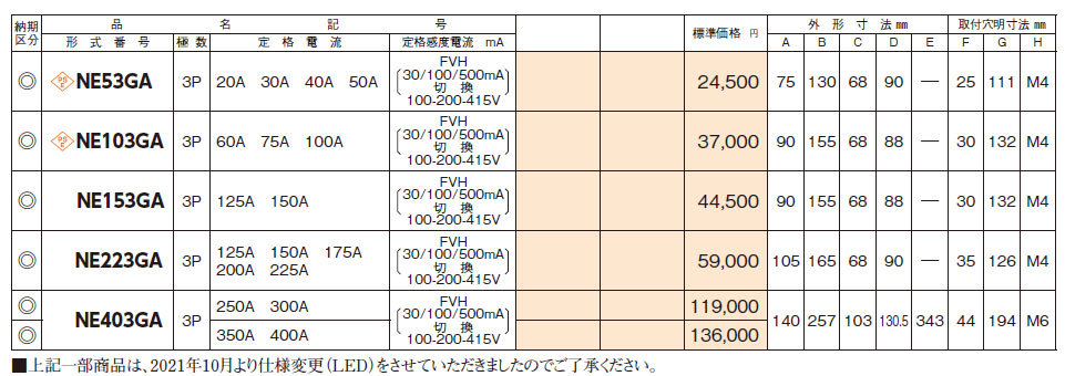 NE53GA 3P 20A 漏電警報付サーキットブレーカ(経済形)