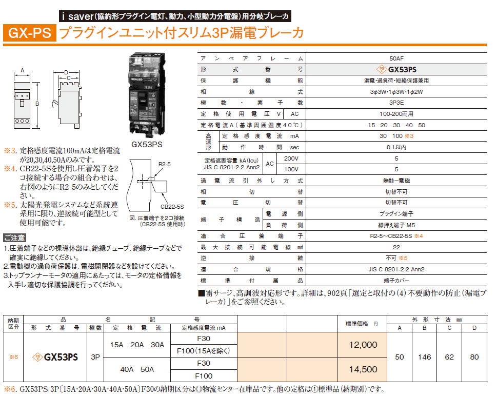 GX53PS 3P 20A F100 プラグインユニット付スリム3P漏電ブレーカ