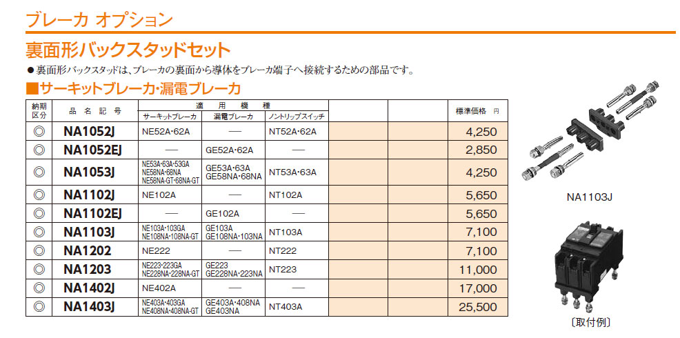NA1052EJ ブレーカオプション 裏面形バックスタッドセット