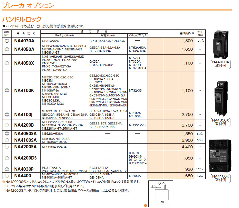 NA4030PS ブレーカオプション ハンドルロック