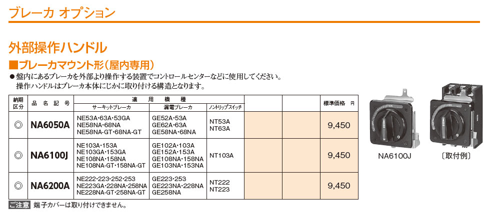 NA6200A ブレーカオプション 外部操作ハンドル ブレーカマウント形(屋内専用)