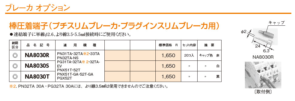 NA8030T ブレーカオプション 棒圧着端子(プチスリムブレーカ・プラグインスリムブレーカ用)キャップ色:黒