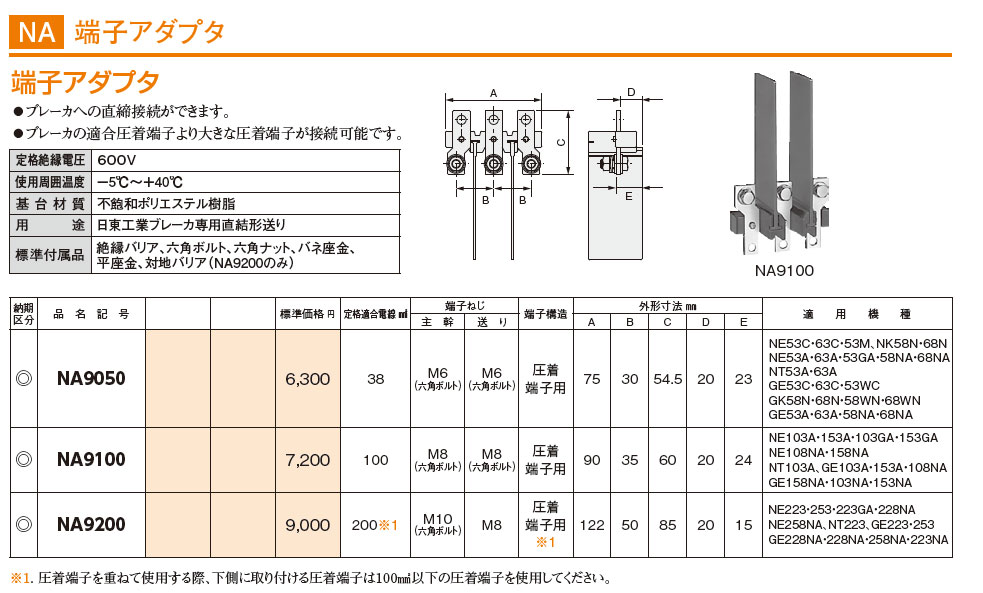 NA9050 ブレーカオプション 端子アダプタ