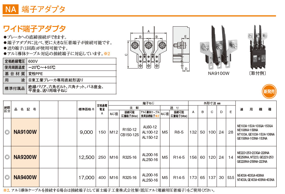 NA9100W ブレーカオプション ワイド端子アダプタ