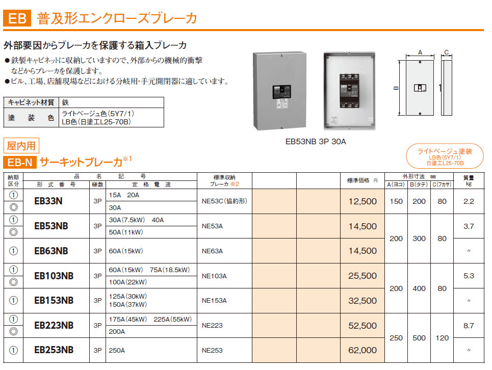 EB253NB 3P 250A 普及形エンクローズブレーカ サーキットブレーカ