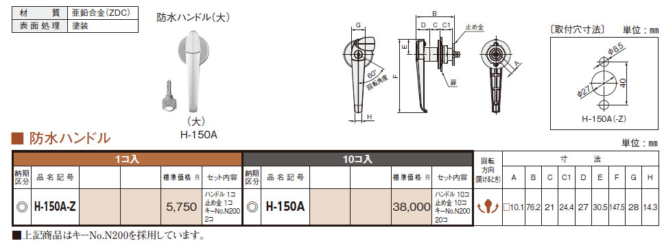 H-150A-Z 防水ハンドル 1コ入