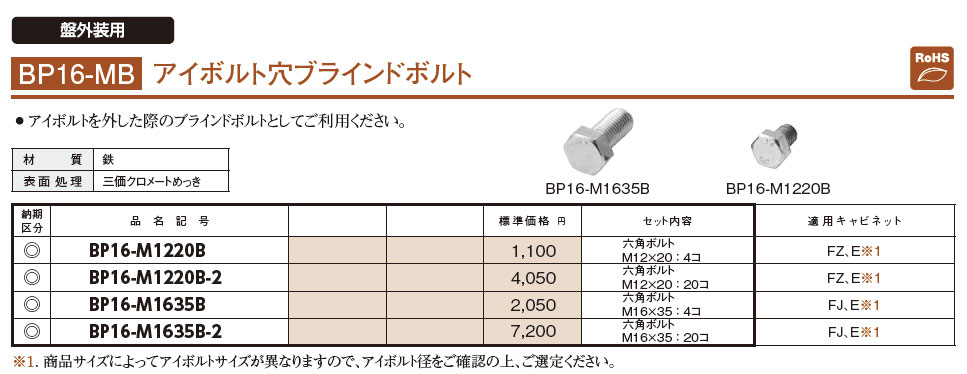 BP16-M1220B アイボルト穴ブラインドボルト
