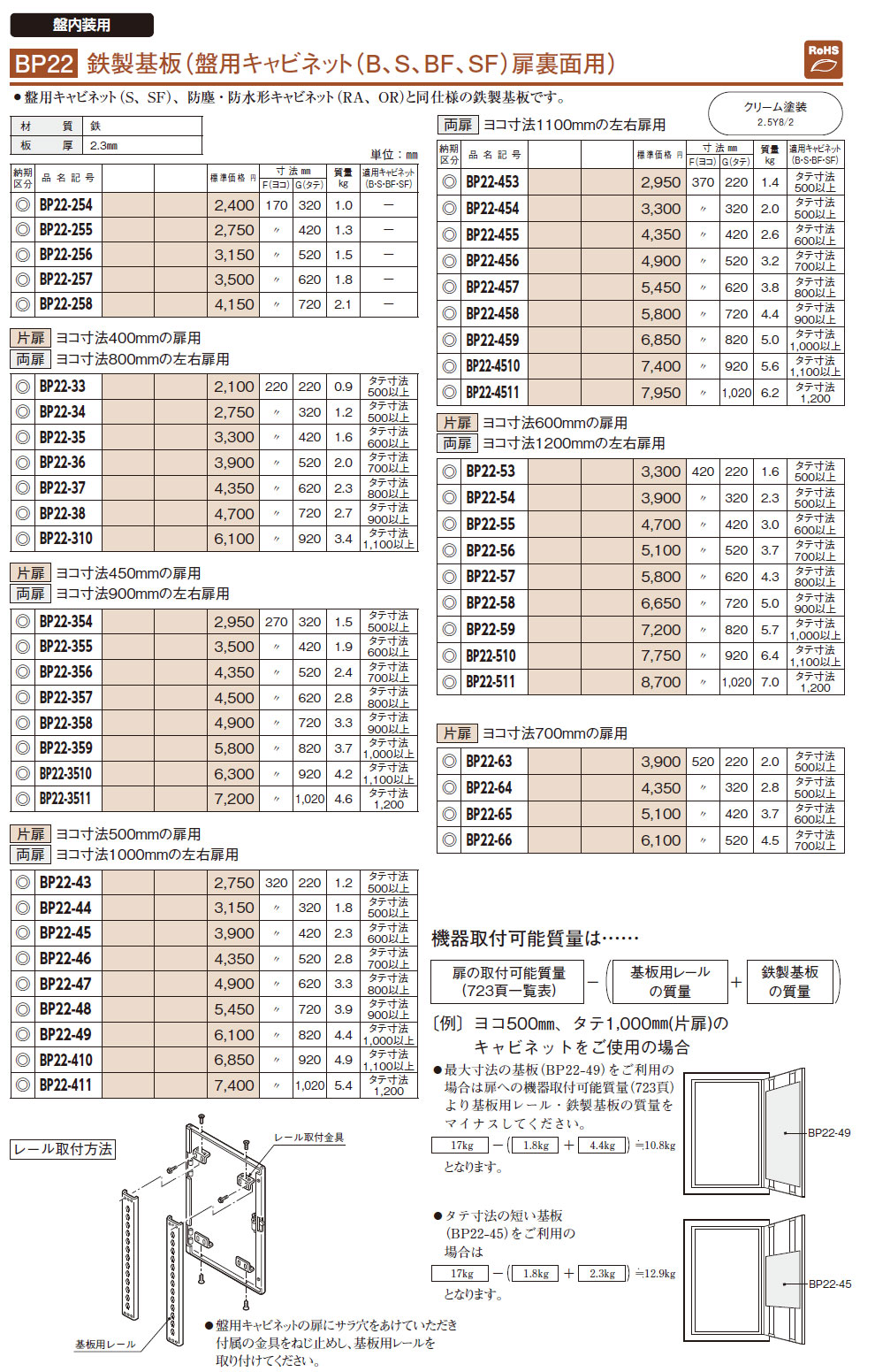BP22-33 鉄製基板(盤用キャビネット扉裏面用)