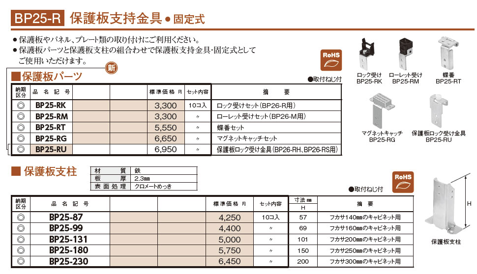 BP25-RK 保護板指示金具・固定式 保護板パーツ 10コ入