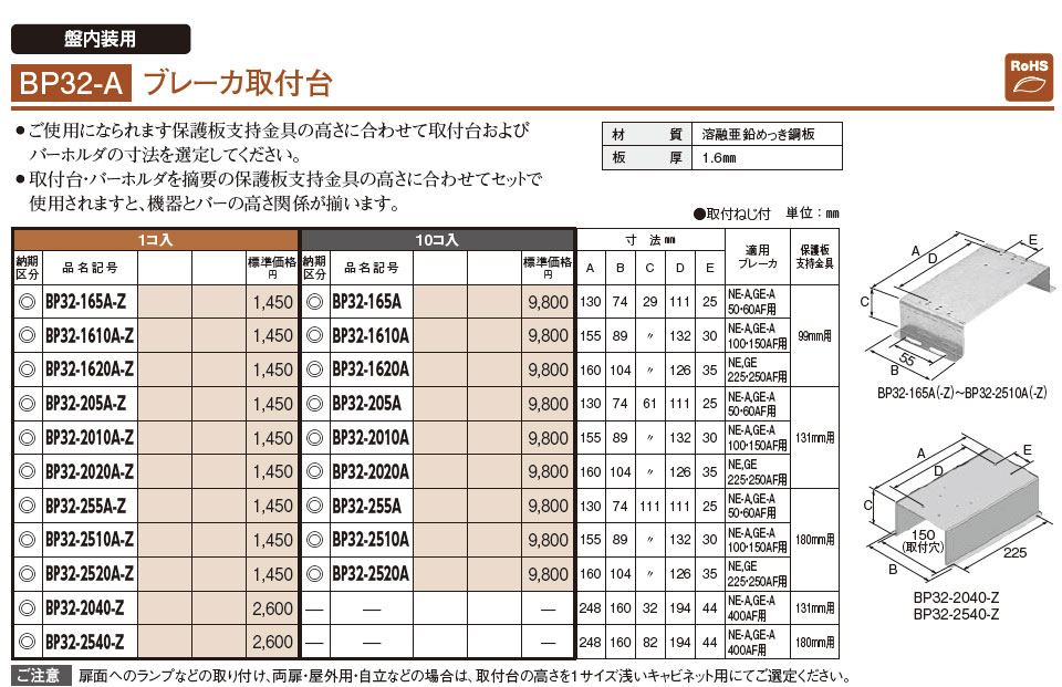 BP32-1610A-Z ブレーカ取付台 1コ入