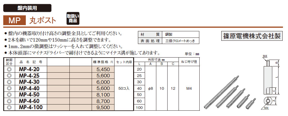 MP-4-100 丸ポスト 50コ入
