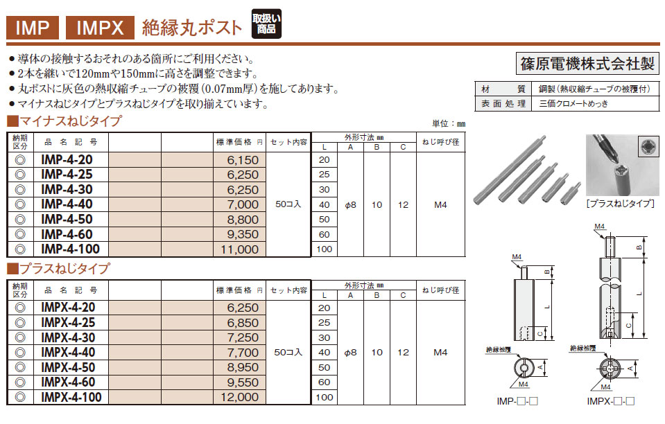 IMPX-4-60 絶縁丸ポスト プラスねじタイプ 50コ入