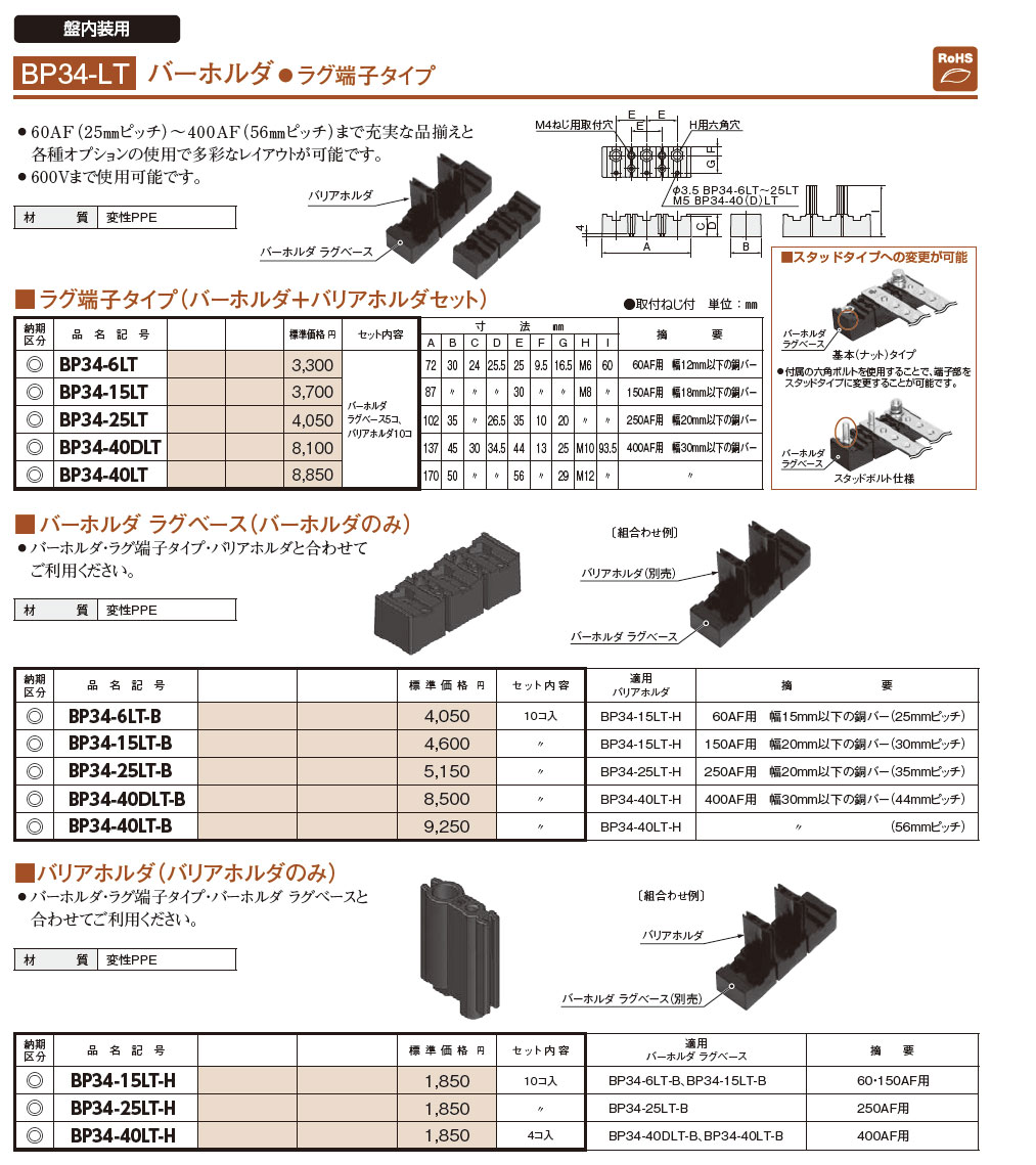 BP34-15LT バーホルダ ラグ端子タイプ (バーホルダ+バリアホルダセット)