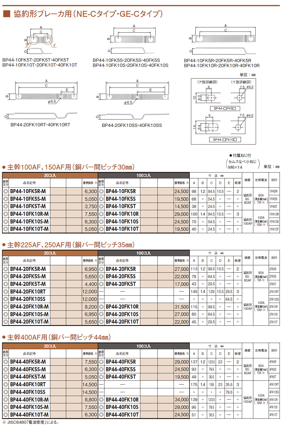 BP44-10FK5T-M 分岐リード板 協約形ブレーカ用 主幹100AF、150F用(20コ入)