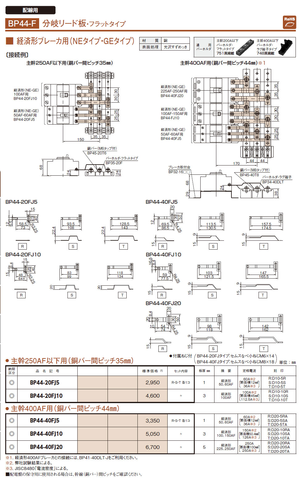 BP44-40FJ5 分岐リード板 経済形ブレーカ用 主幹400AF用