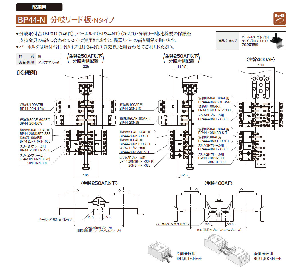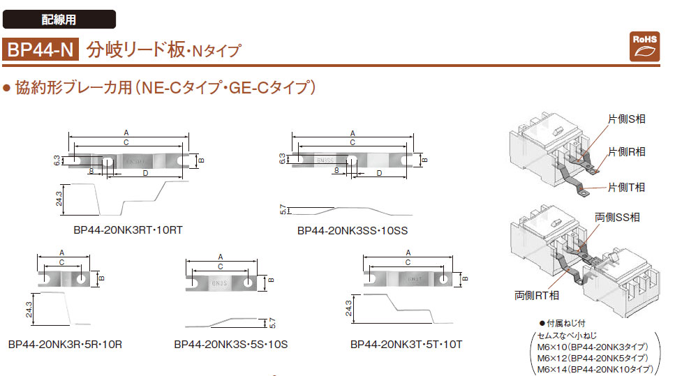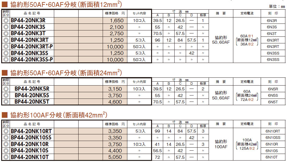 BP44-20NK3R 分岐リード板 主幹250AF以下用 協約形50AF・60AF分岐(断面積12mm2)