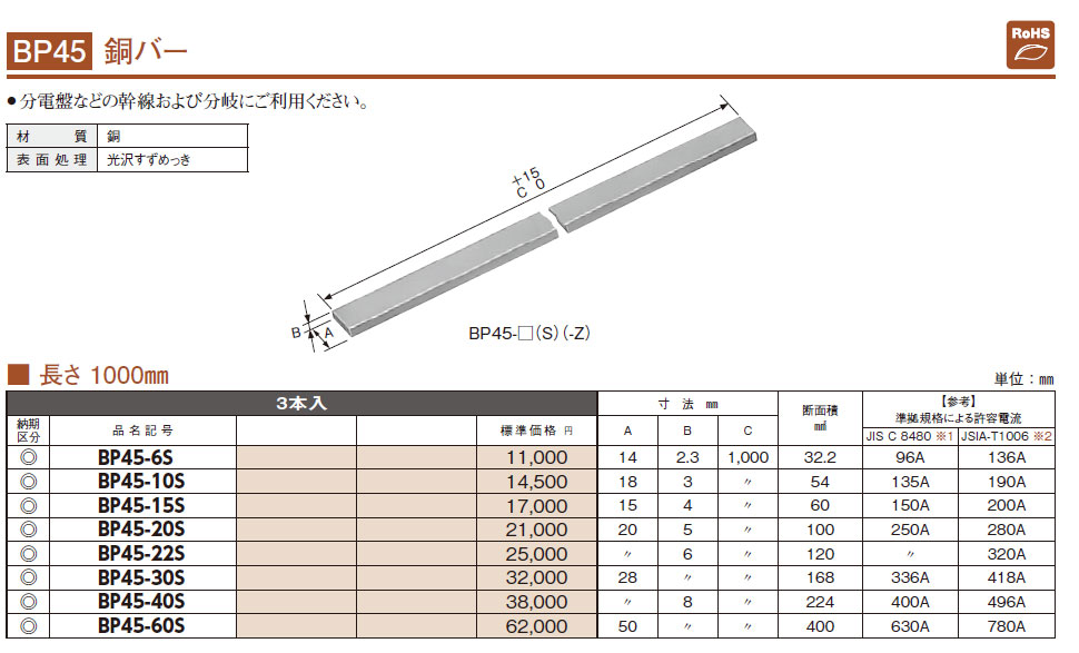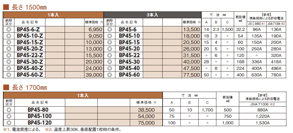 BP45-80 銅バー 長さ1700mm 1本入