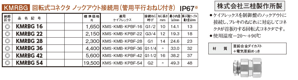 KMRBG 16 フレキシブル電線管  回転式コネクタ ノックアウト接続用