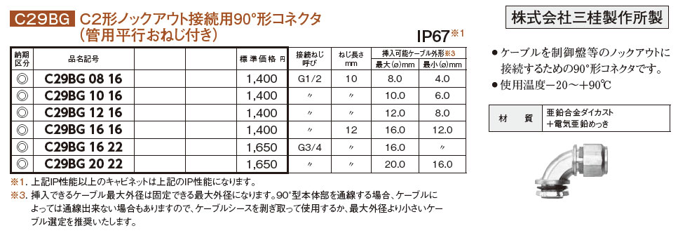 C29BG 12 16 C2形ノックアウト接続用90°形コネクタ