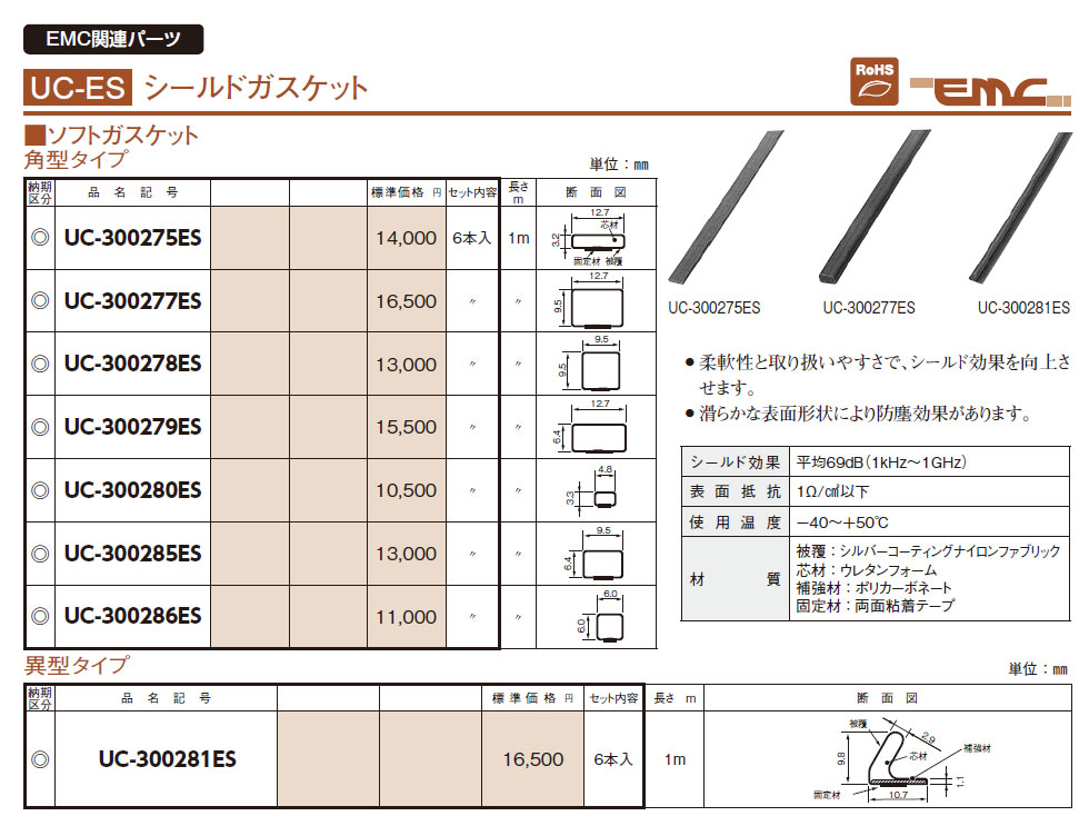 UC-300278ES シールドガスケット ソフトガスケット 角型タイプ