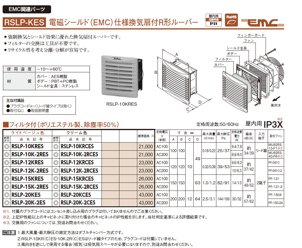 RSLP-15KRES 電磁シールド(EMC)仕様換気扇付R形ルーバー