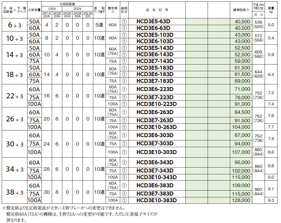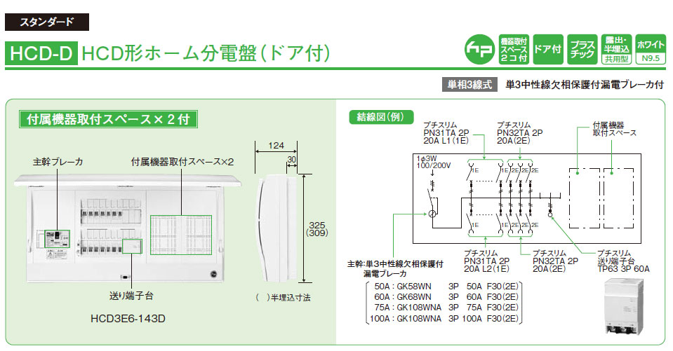 HCD3E6-143D HCD形ホーム分電盤(ドア付)付属機器取付スペースx2付 14+3 60A