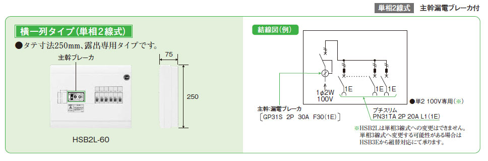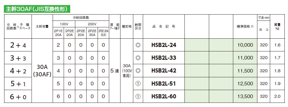 HSB2L-60 HSB形ホーム分電盤(ドアなし) 主幹30AF 6+0 30A(30AF)