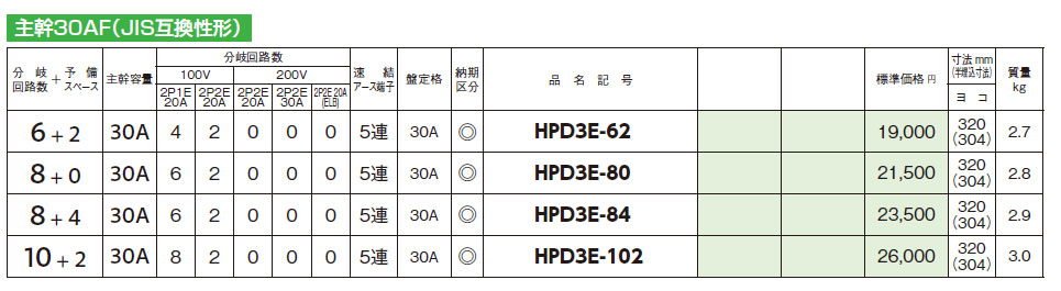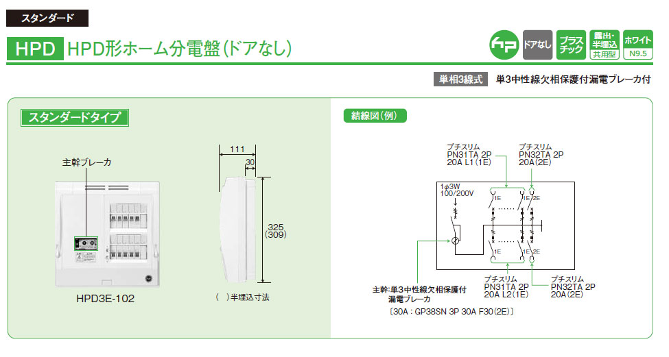 HPD3E-102 HPD形ホーム分電盤(ドアなし)主幹30AF 10+2 30A