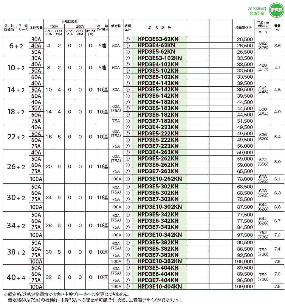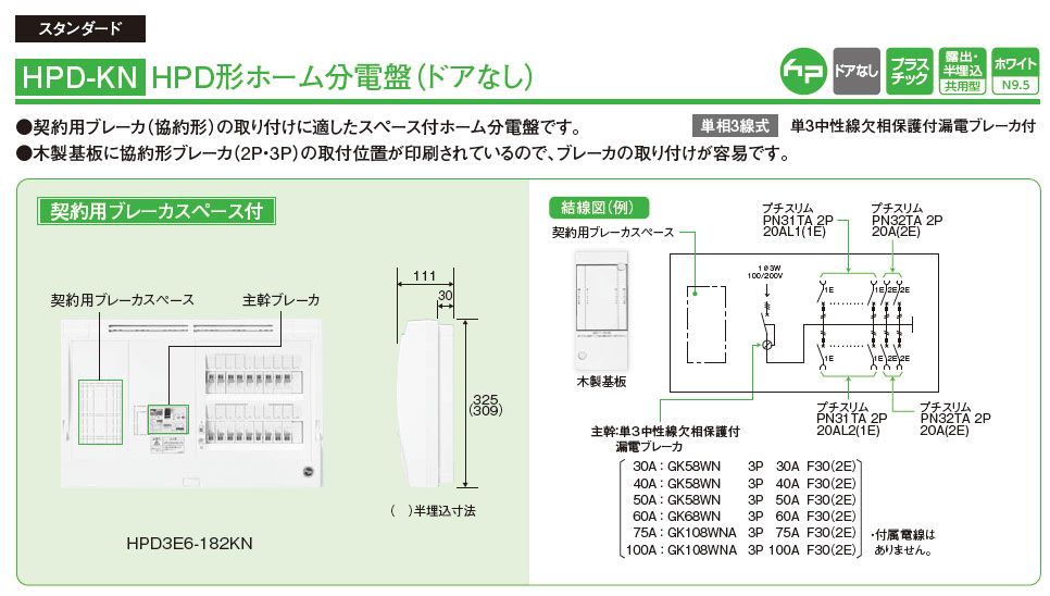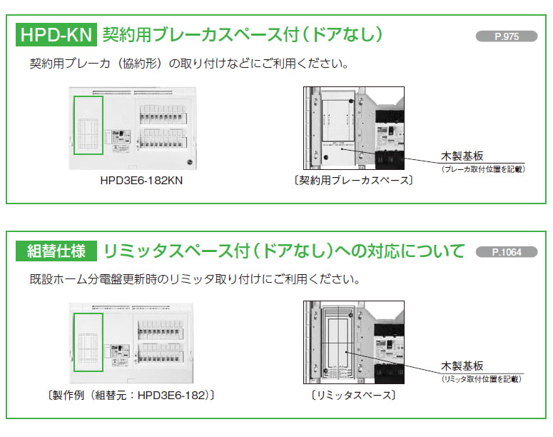 HPD3E53-62KN HPD形ホーム分電盤(ドアなし)契約用ブレーカスペース付 6+2 30A