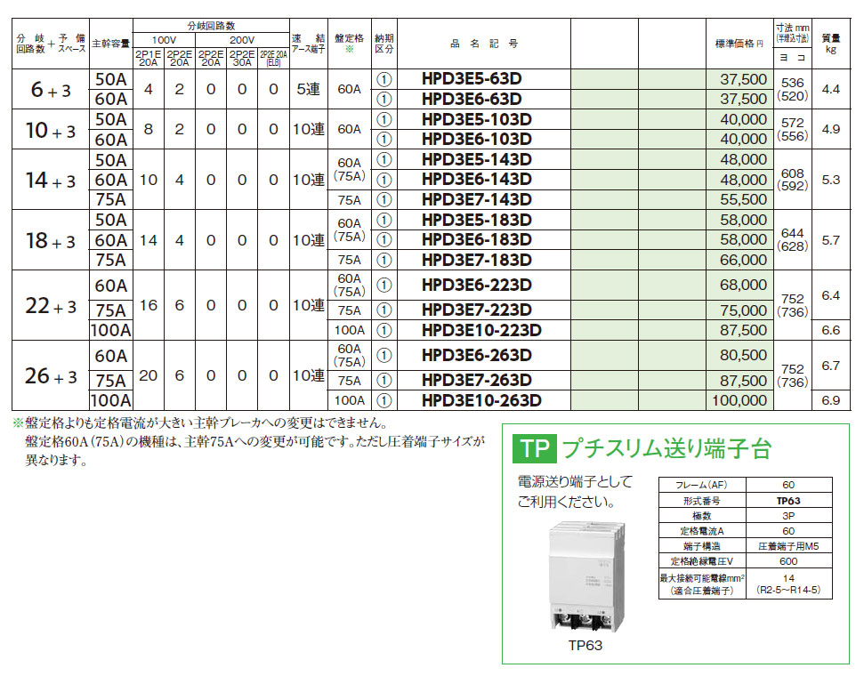 HPD3E6-103D HPD形ホーム分電盤(ドアなし)付属機器取付スペースx2付 10+3 60A