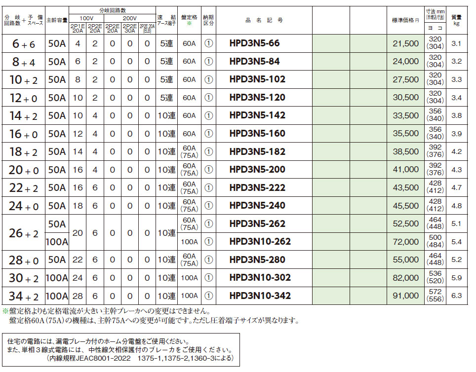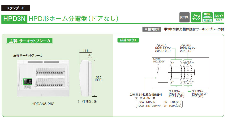メーカー:日東工業 HPD形ホーム分電盤(ドアなし)主幹サーキットブレーカ 8+4 50A 単相3線式 単3中性線欠相保護付サーキットブレーカ付