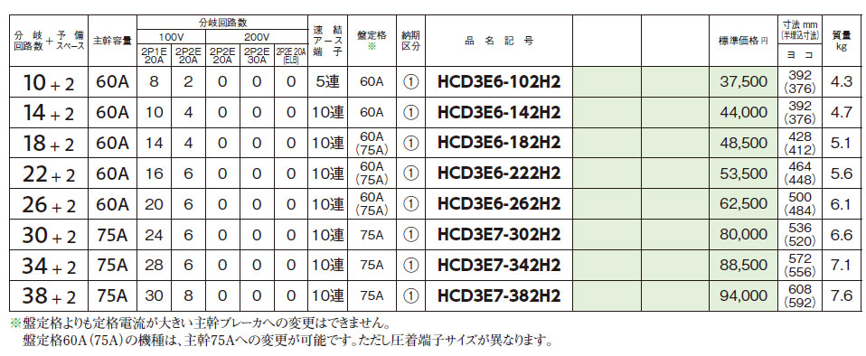 HCD3E6-102H2 HCD-H2 ホーム分電盤 非常用一次送り2回路付(ドア付) 10+2 60A