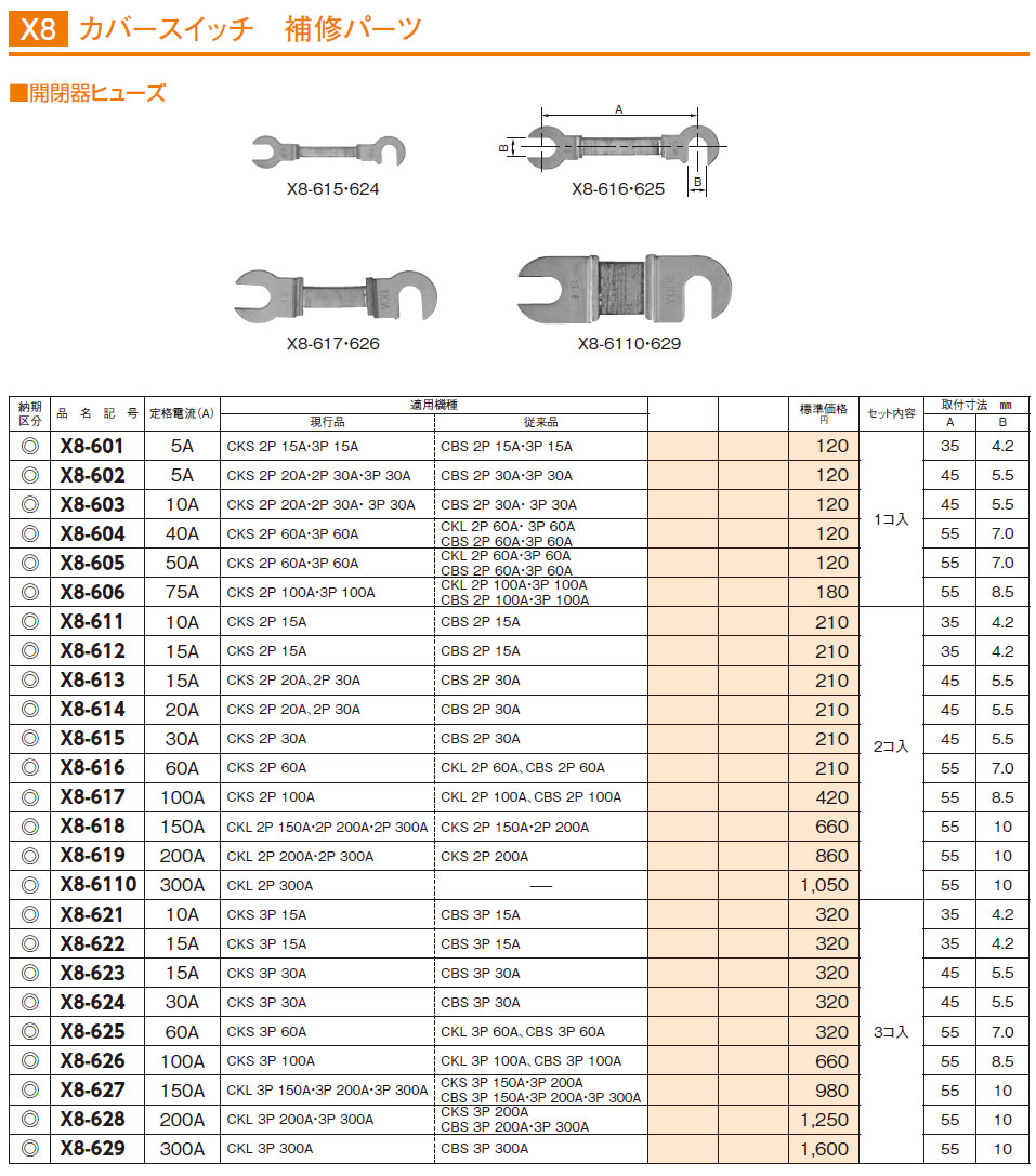 X8-624 カバースイッチ 補修パーツ 開閉器ヒューズ