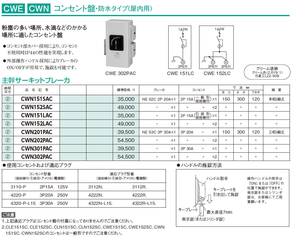 CWN152LAC 標準分電盤 コンセント盤・防水タイプ(屋内用) 主幹サーキットブレーカ