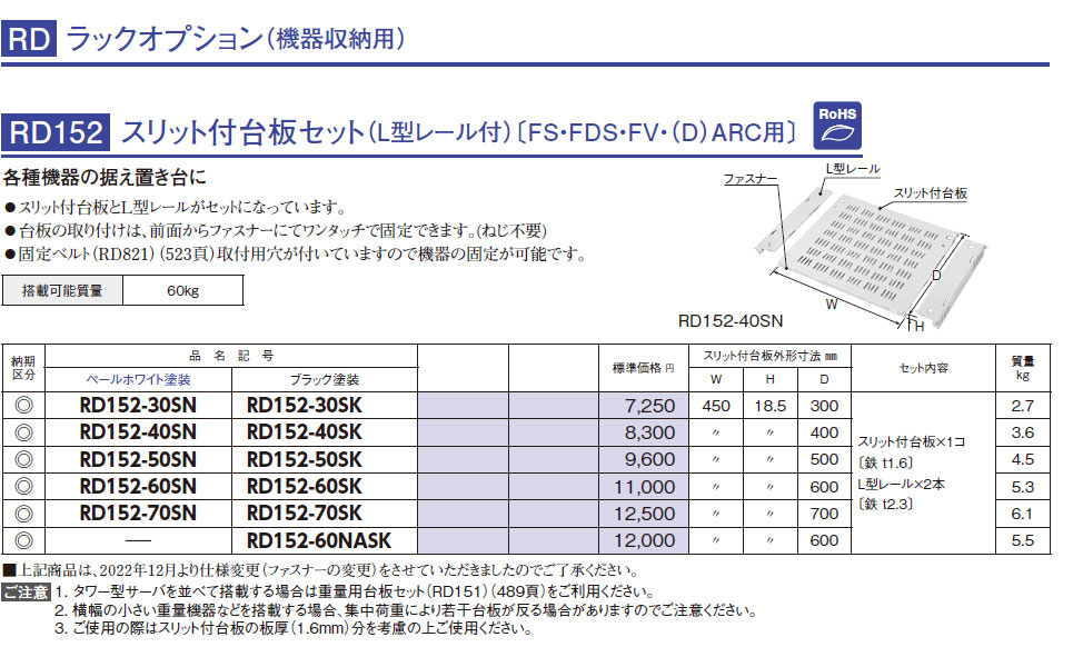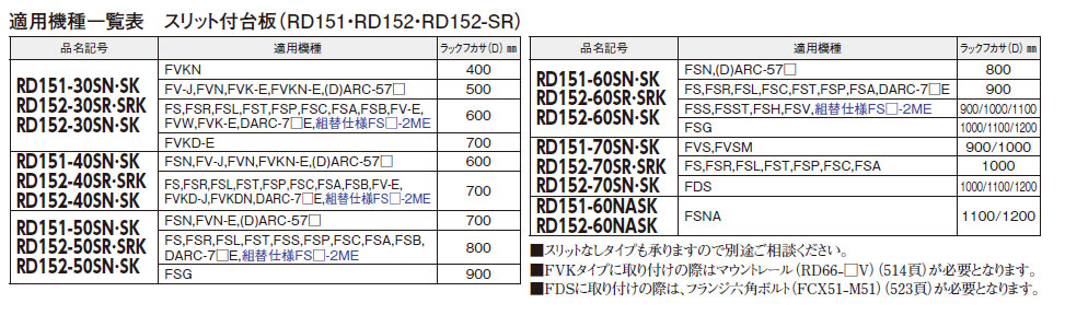 RD152-30SN スリット付台板セット(L型レール付)〔FS・FDS・FV・(D)ARC用〕