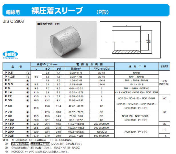銅線用裸圧着スリーブ(E形) リングスリーブ