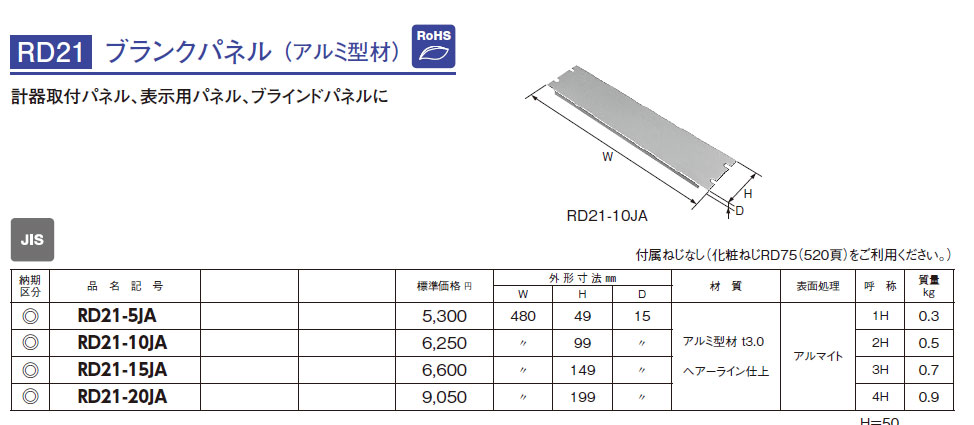 RD21-10JA ブランクパネル(アルミ型材)